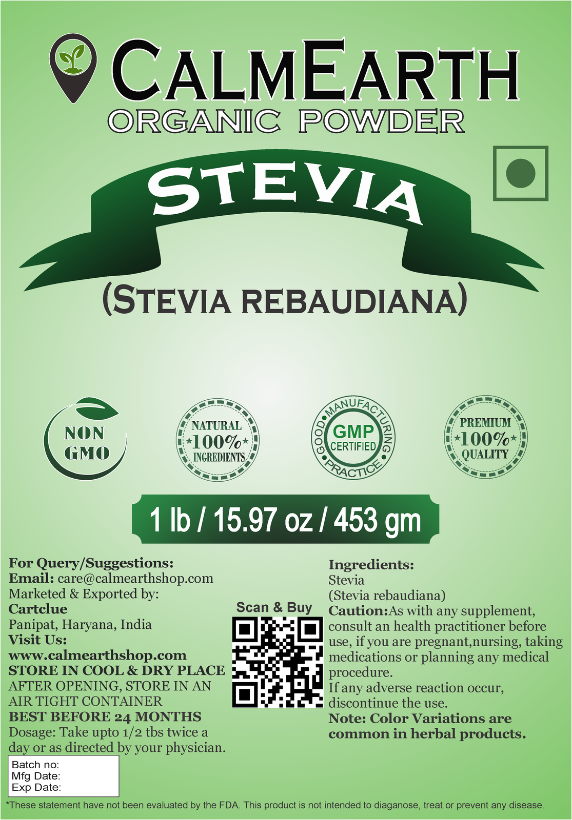 Be the first to review “CalmEarth Stevia Organic Herbal Powder 100% Pure Stevia rebaudiana” Cancel reply